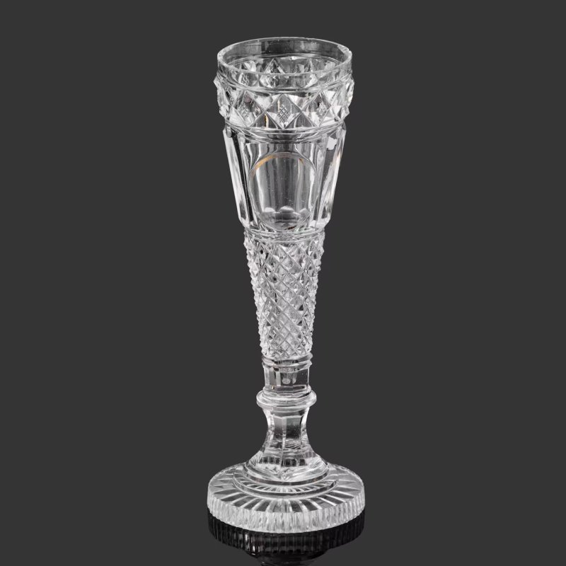 Бокал-флейта с геометрическим декором и медальонами, Императорский стеклянный завод (предположительно), 1850-1900-е гг. Частное собрание.