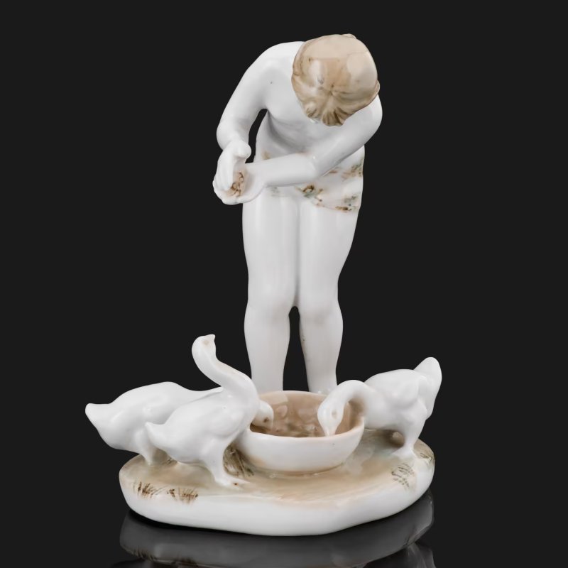 “Девочка с гусятами” – кусочек не только творческого наследия великого советского скульптора, замечательной художницы Евгении Ильиничны Гатиловой, но и в целом отечественного декоративно-прикладного искусства. Она собрала в себе все характерные черты фарфора 1950-1960-х гг. и создает позитивный, радостный образ советского человека. Работа музейного уровня, которую можно не только увидеть в стенах нашей галереи, но и приобрести, как для своей личной коллекции, так и в качестве замечательного, бесценного подарка. В восторг от нее придут любители советского фарфора и советской эстетики. Она станет замечательным украшением интерьера, рабочего стола, кабинета...