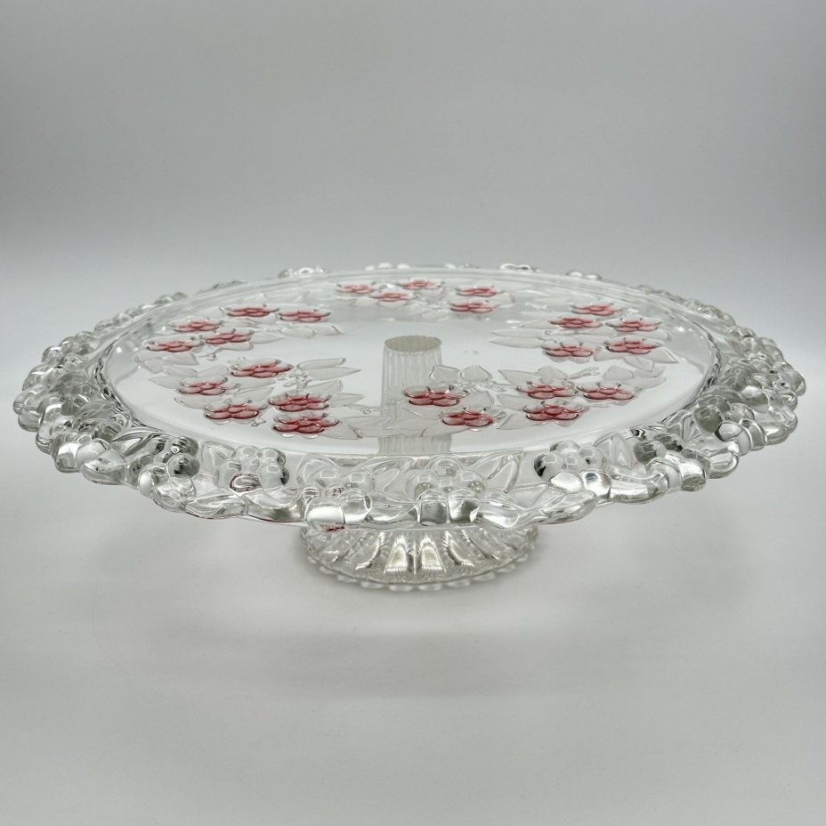 Большое сервировочное блюдо (тортница) с резным декором, хрусталь, СССР, 1970-1990 гг. (арт. 52431)