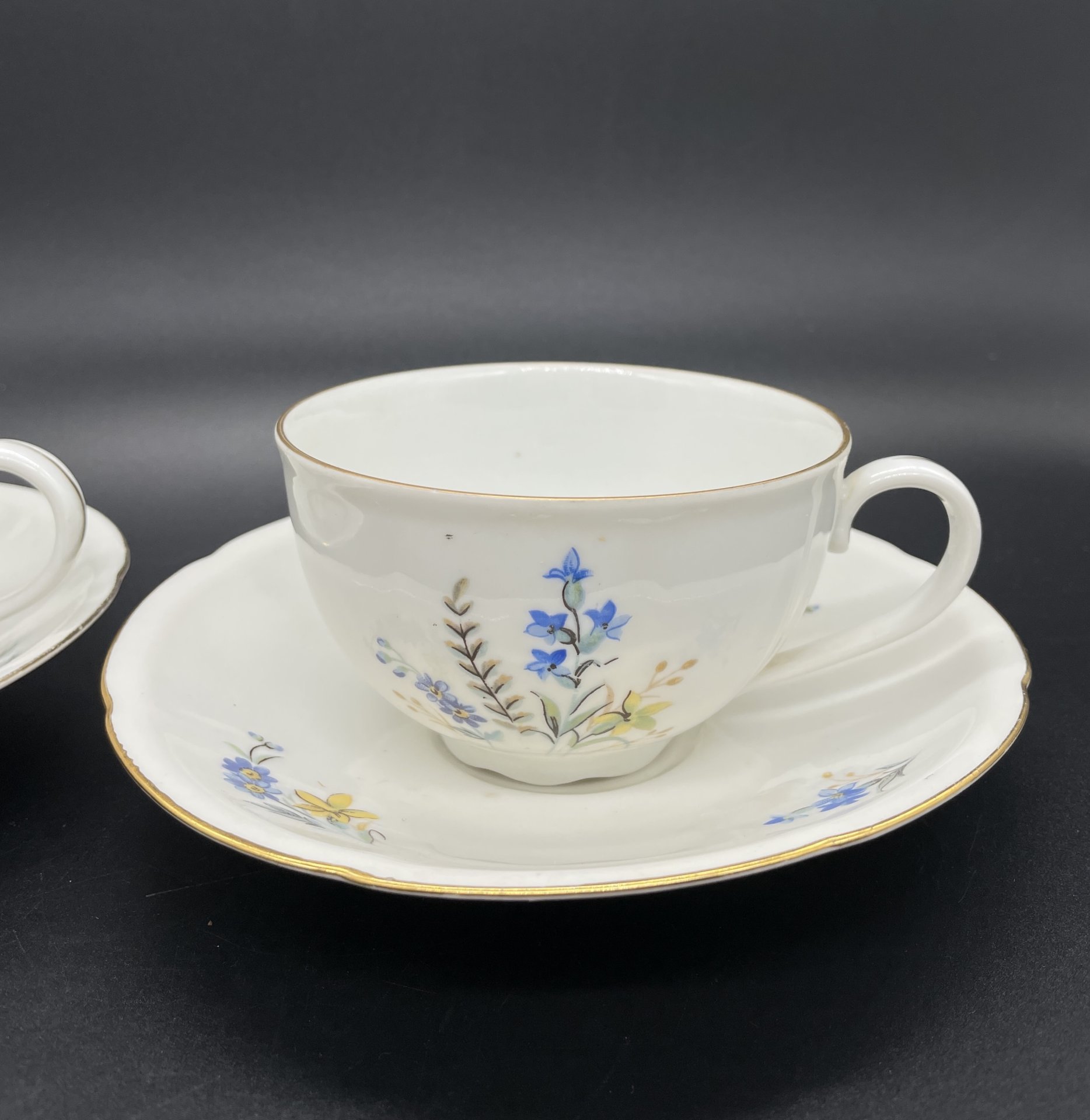 Набор из 2-ух чайных пар с цветочным декором, фарфор, роспись, золочение, Epiag Royal Czechoslovakia, Чехословакия, 1960-1990 гг., фарфор, роспись, золочение, Чехословакия, 1960-1990 гг. (арт. 15135)