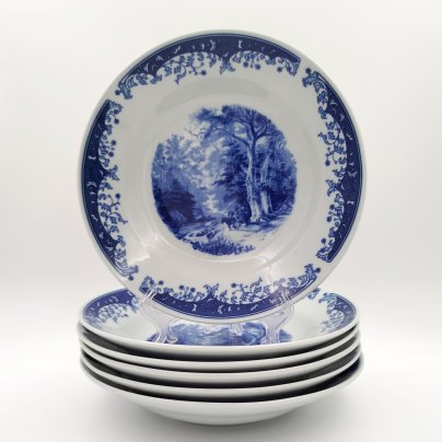 Набор из 6 суповых тарелок с пейзажным декором, фарфор, деколь, Китай, 1990-2010 гг., фарфор, 1990-2010 гг. (арт. 32925)