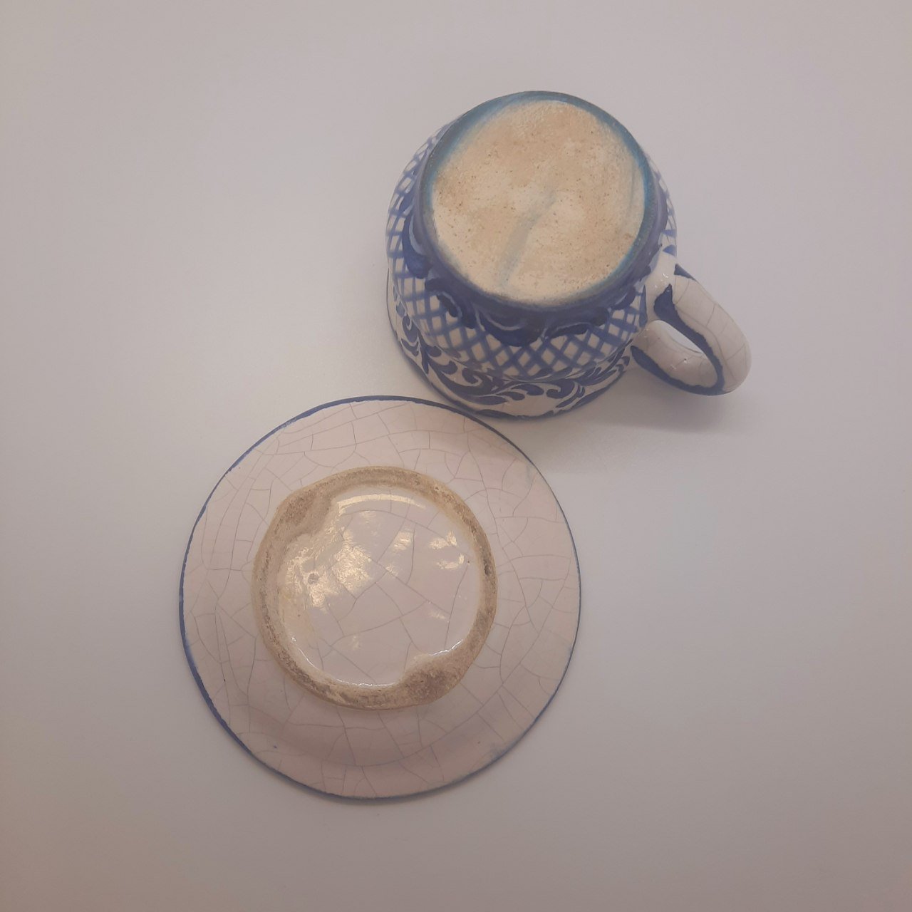 Пара чайная с растительным декором в бело-синей гамме, керамика, роспись, кракле, Россия, 1990-2010 гг. (арт. 28622)