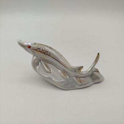 Статуэтка "Осётр", фарфор, люстр, золочение, Дмитровский фарфоровый завод (ДФЗ Вербилки), СССР, 1940-1954 гг. (арт. 49420)