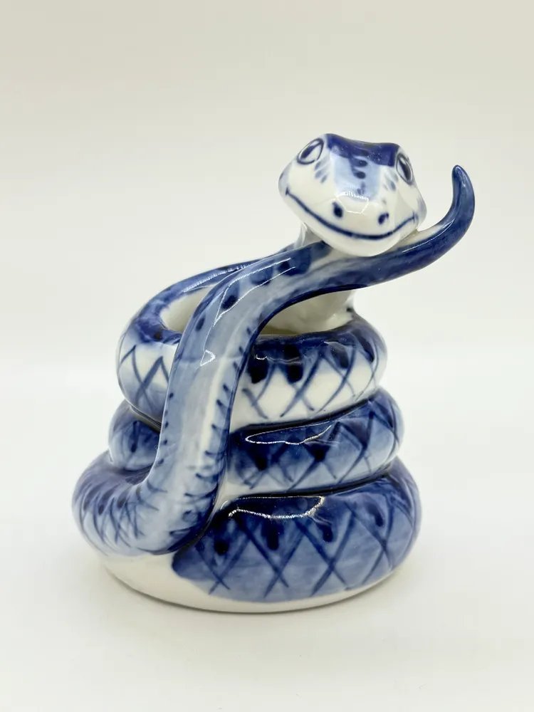 Статуэтка "Змея", Гжель, фарфор, роспись, Россия, 1991-2010 гг. (арт. 58208)