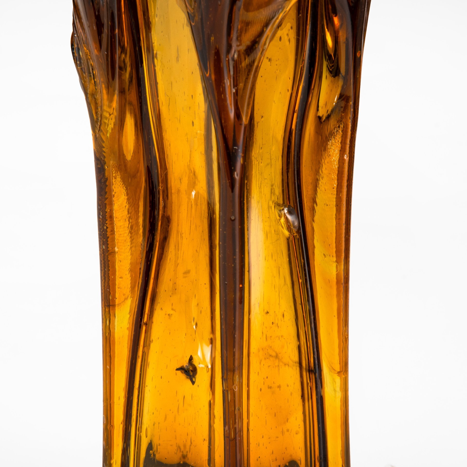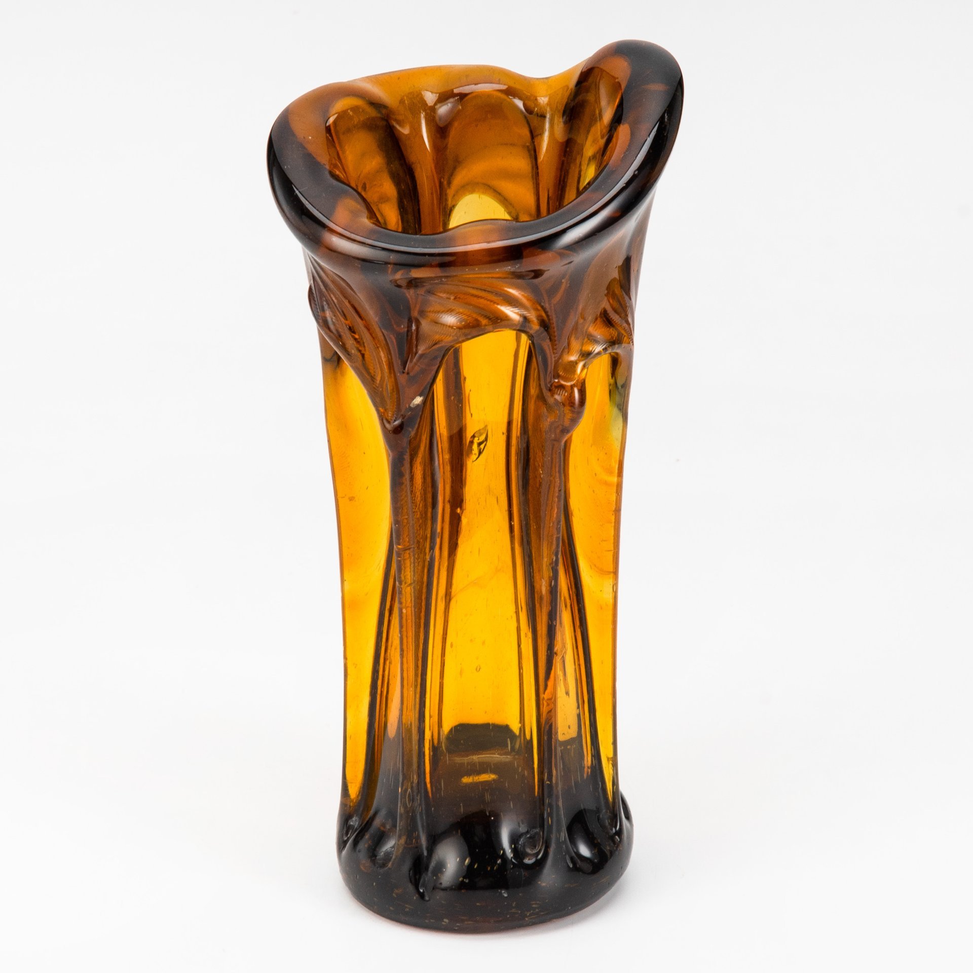 Ваза медового оттенка, выполненная в гутной технике, цветное стекло, гутная техника, Европа, 1970-1990 гг. (арт. 58194)