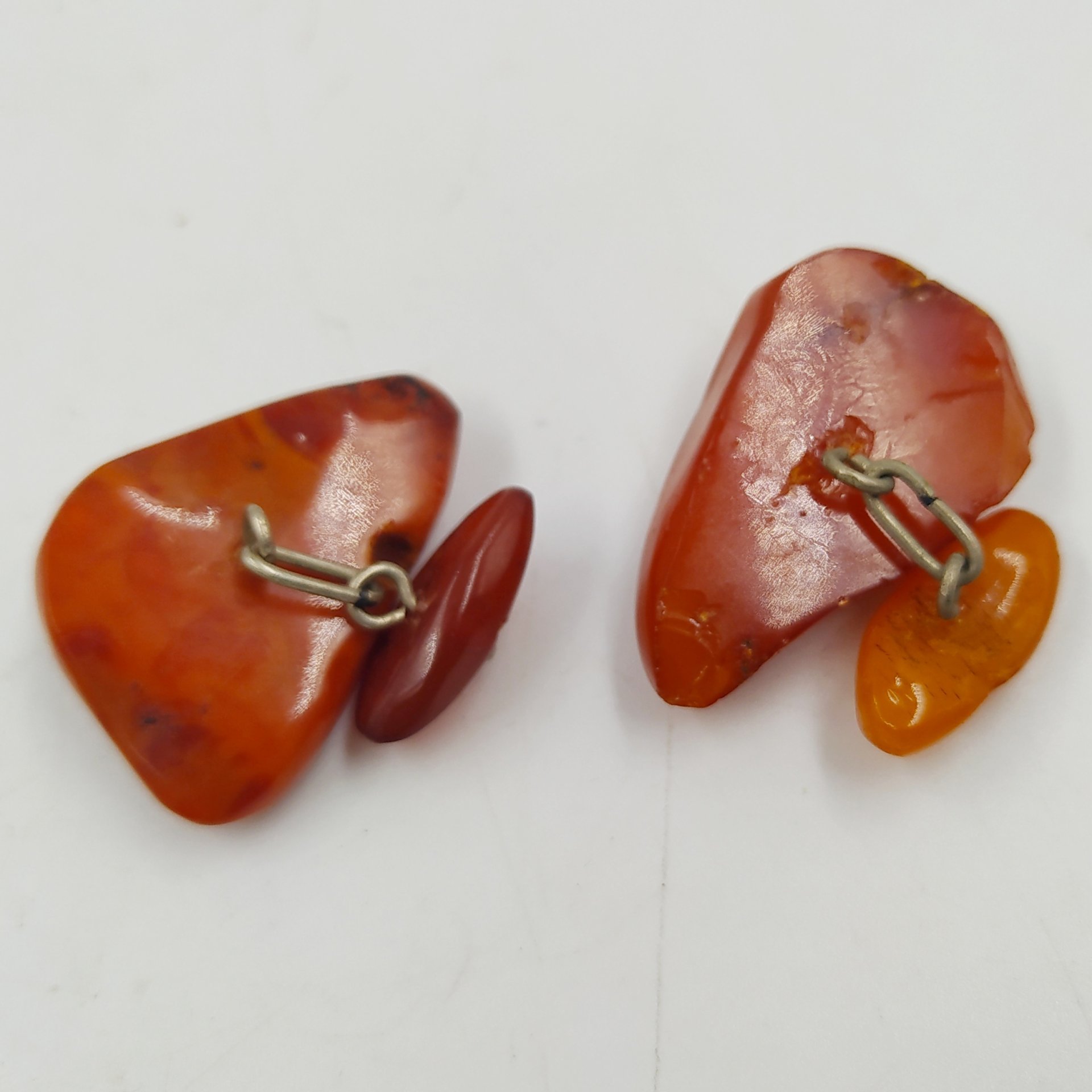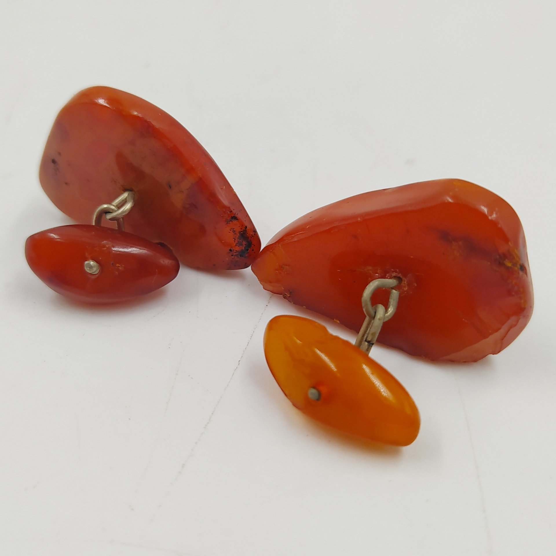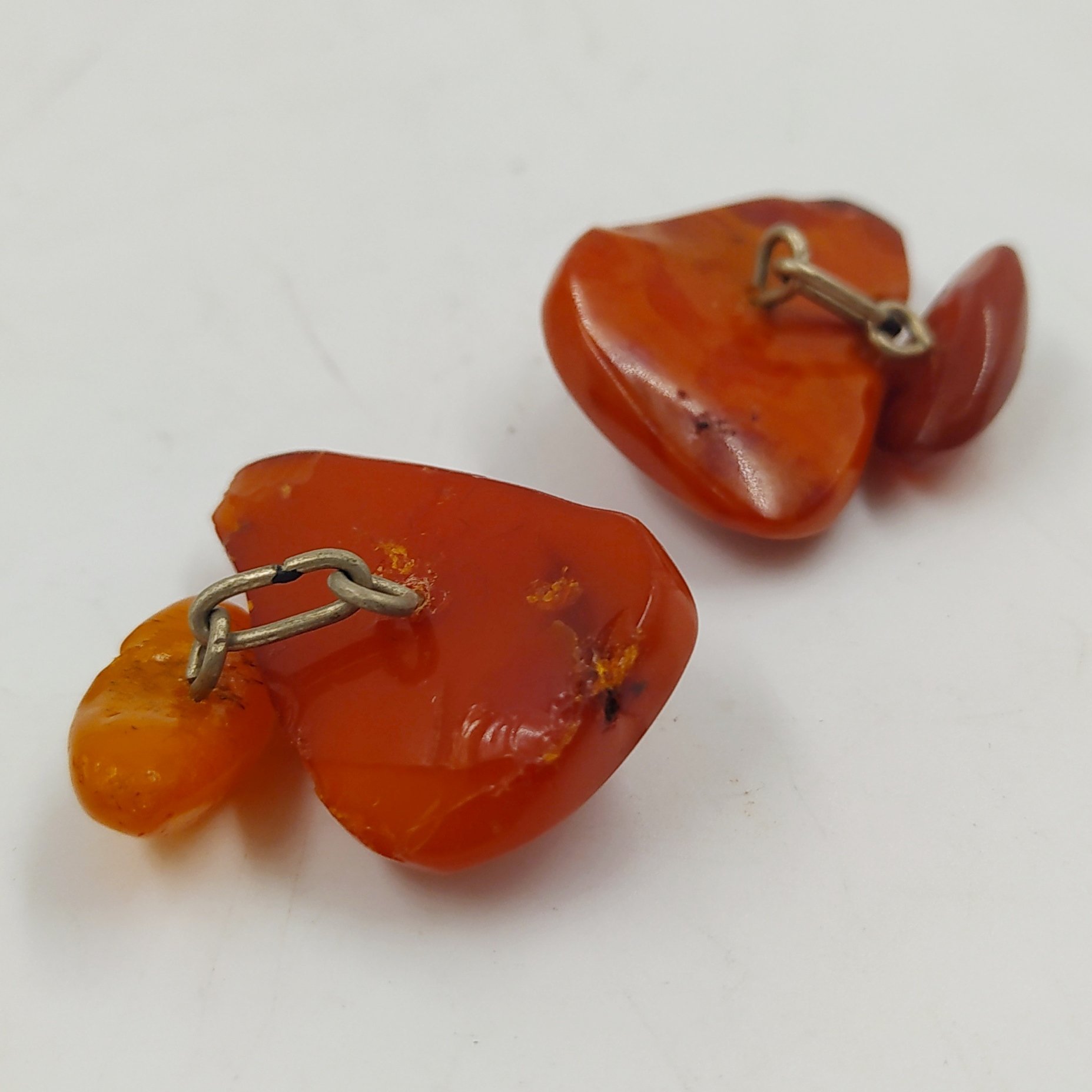 Запонки винтажные, янтарь, металл, СССР, 1970-1990 гг. (арт. 57728)
